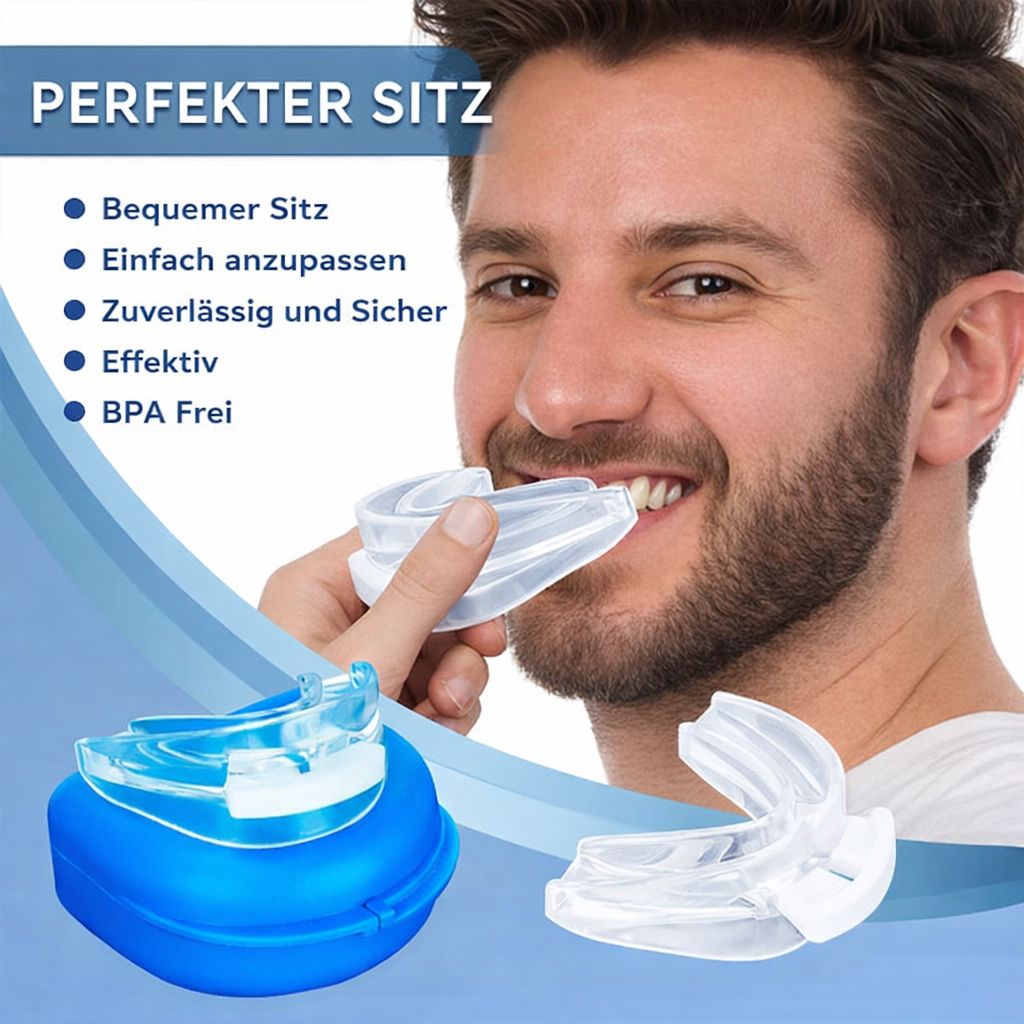 Schnarchen und Bruxismus? Beende sie jetzt. Übernimm die Kontrolle über deine Nächte mit dem Anti-Schnarch-Mundstück.